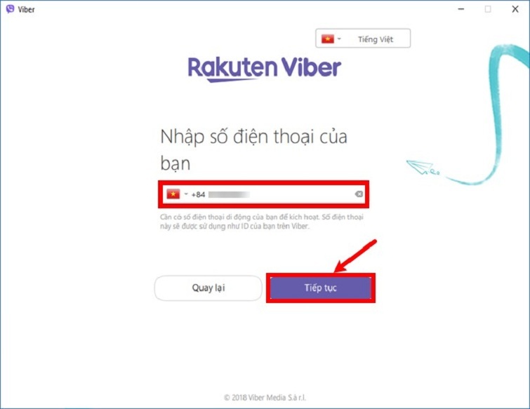 Nếu Viber trước đó đã được cài đặt trên thiết bị di động của bạn, hãy lựa chọn "Có". Bạn sẽ chuyển sang một giao diện mới, nơi bạn sẽ nhập số điện thoại hiện đang sử dụng và sau đó nhấn vào nút "Tiếp tục".