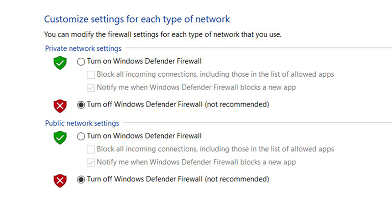 Tạm thời tắt firewall và antivirus để kiểm tra xem có phải chúng đang chặn truy cập không. Nếu sau khi tắt mà truy cập được, hãy thêm trang web vào danh sách ngoại lệ thay vì tắt hoàn toàn bảo mật.