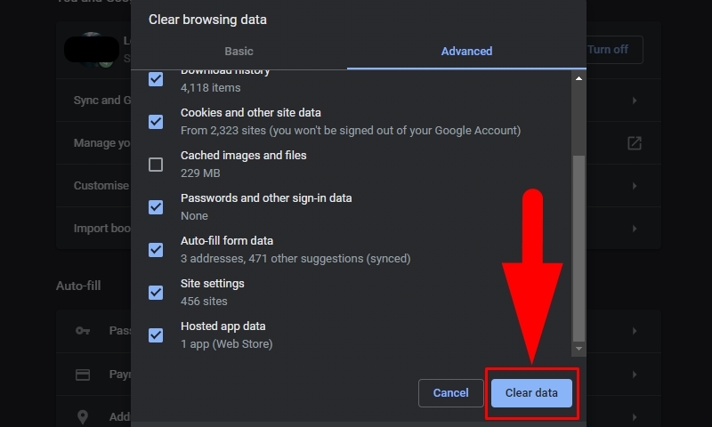 - Nhấn "Clear data"