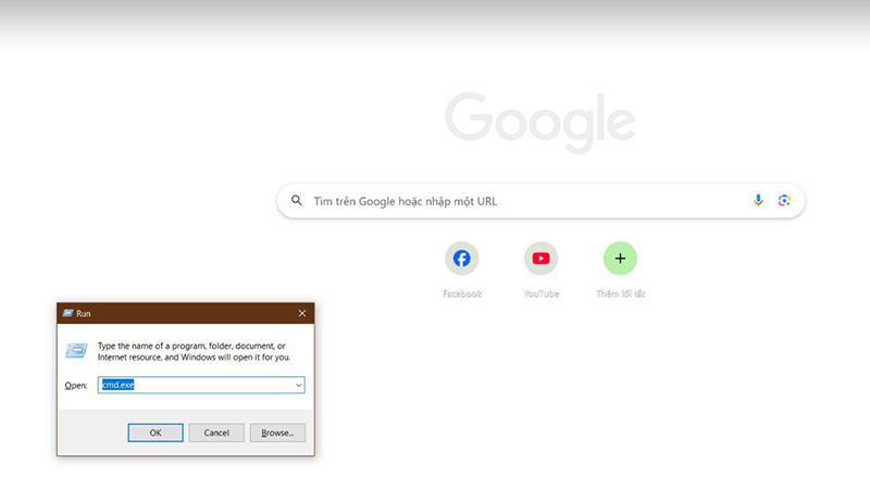 Bước 1: Nhấn tổ hợp phím Windows + R, gõ "cmd" và nhấn Enter.