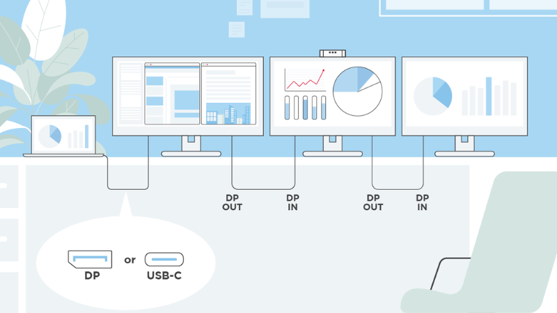 - Kết nối chuỗi (Daisy Chain) – Chỉ cần một cổng, bạn có thể nối tiếp nhiều thiết bị như dock, màn hình, ổ cứng ngoài mà không cần hub phức tạp.