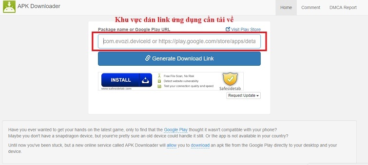Ngay sau đó, giao diện sử dụng của trang web sẽ hiển thị. Với giao diện thiết kế đơn giản, dễ sử dụng nên bất kỳ người dùng nào cũng có thể dùng để tải file APK về cho máy tính.