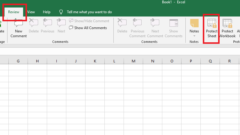 Bước 6: Vào Review → Protect Sheet để bảo vệ lại nếu cần (lần này không tick Hidden).