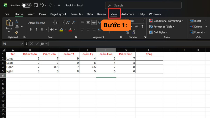 Bước 1: Chuyển sang tab View trên thanh Ribbon.
