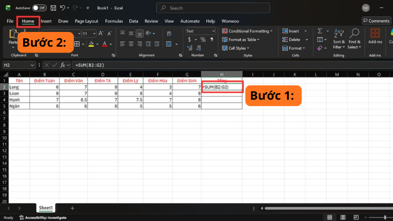 - Khi nhập =SUM(...), ô hiển thị chuỗi "=SUM(...)" thay vì tính kết quả.