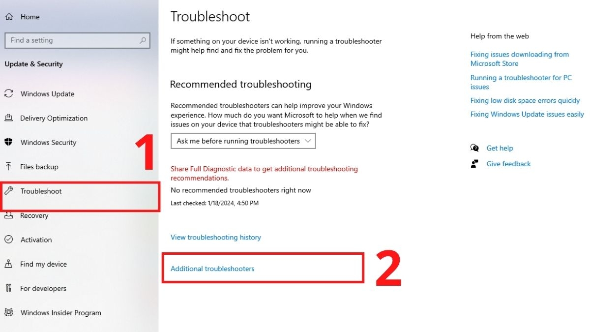 - họn "Update & Security", sau đó click vào "Troubleshoot" ở menu bên trái.