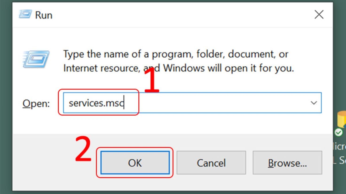 Nhấn Windows + R, gõ "services.msc" và nhấn Enter.
