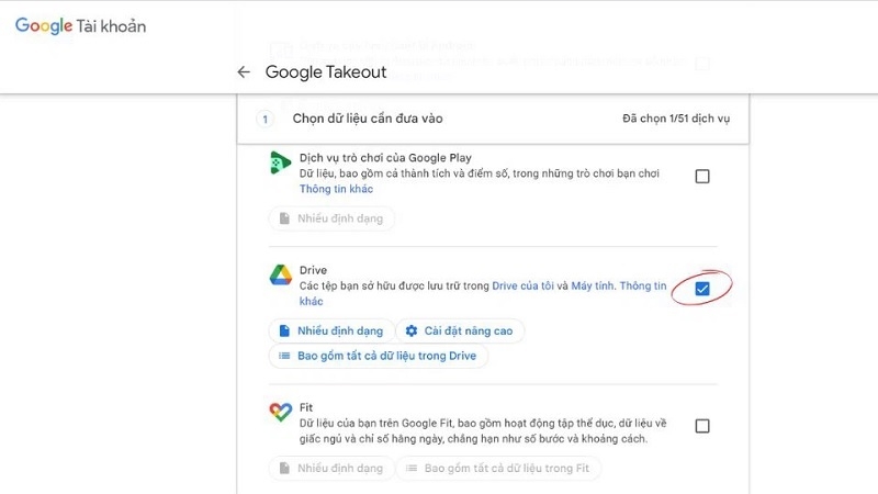 Bước 1: Truy cập Google Takeout và chọn dữ liệu cần tải