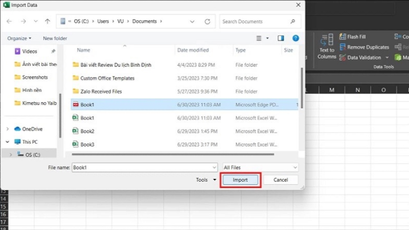 - Bước 3: Ngay sau đó, một cửa sổ Import Data sẽ được hiển thị. Lúc này, bạn hãy tìm kiếm và click chuột lên file PDF mà bạn cần chuyển đổi sang Excel. Tiếp theo, bạn nhấn vào nút Import để tiếp tục.