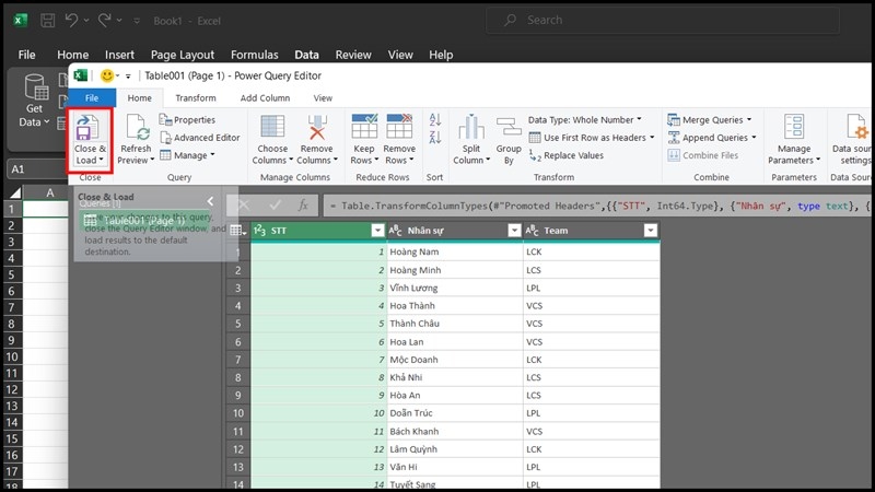 - Bước 6: Kiểm tra và tải dữ liệu: Trong trình chỉnh sửa Power Query, kiểm tra từng cột dữ liệu. Bạn có thể áp dụng các lệnh như thay đổi loại dữ liệu (ví dụ: từ text sang number) hoặc loại bỏ hàng trống. Sau khi hài lòng, chọn Close & Load để tải bảng vào sheet Excel mới.