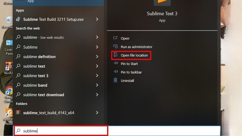 - Bước 1: Mở Start Menu, tìm ứng dụng, nhấp chuột phải và chọn "Open file location".