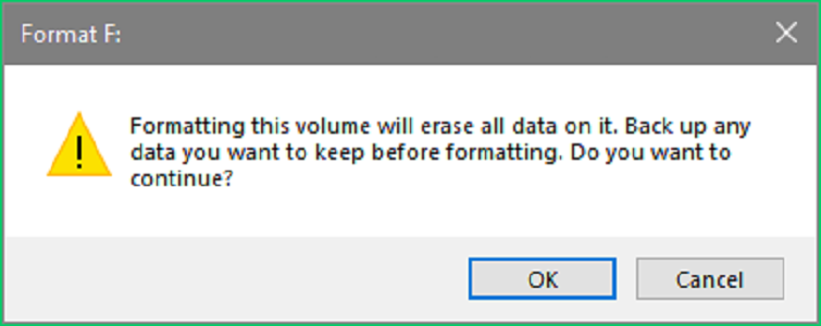 Lúc này sẽ có thông báo hiện lên, báo rằng tất cả dữ liệu trong ổ cứng sẽ bị xoá sạch. Vì vậy, nếu có dữ liệu gì quan trọng thì các bạn hãy copy ra một nơi khác. Nhưng nếu không có dữ liệu gì quan trọng thì các bạn nhấn nút OK để tiến hành Format.