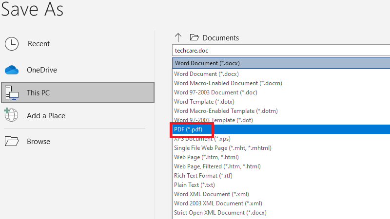 Bước 3: Tại Save as type, chọn PDF (*.pdf).