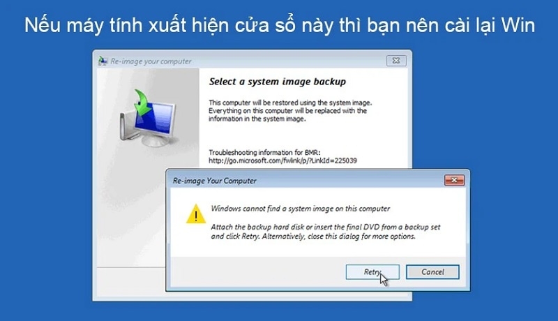 Reinstall Windows: Cài đặt lại Windows bằng USB hoặc đĩa cài đặt (yêu cầu thiết bị cài đặt).