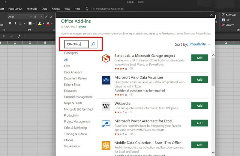 Cài đặt bổ trợ QR4Office
