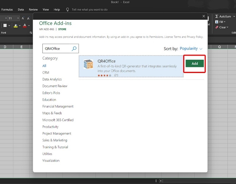 Bước 3: Cuối cùng, bạn nhấn nút Add nằm bên cạnh để quá trình cài đặt QR4Office được hoàn tất.