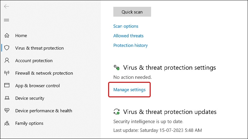 | Tắt tạm thời qua Windows Defender | An toàn, dễ khôi phục | Tự động bật lại sau 15 phút | 15 phút |