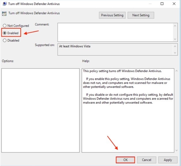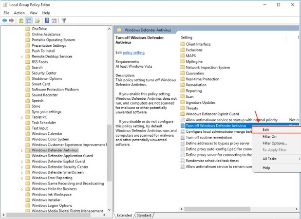 - Double-click "Turn off Microsoft Defender Antivirus"