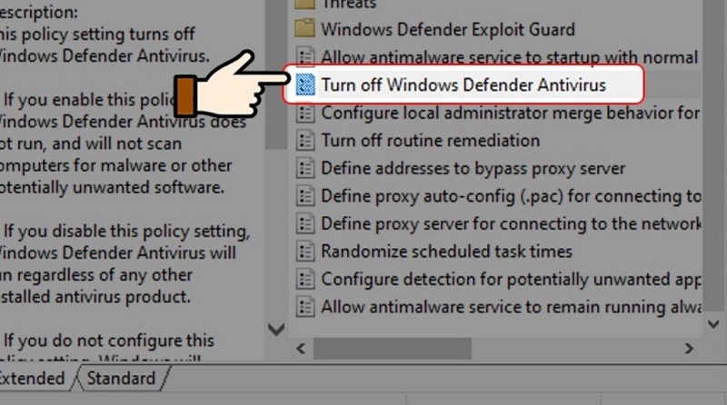 - Tìm và double-click vào tùy chọn Turn off Microsoft Defender Antivirus.