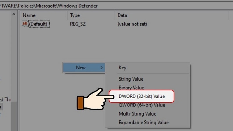 - Trong khóa này, right-click > New > DWORD (32-bit) Value, đặt tên DisableAntiSpyware.