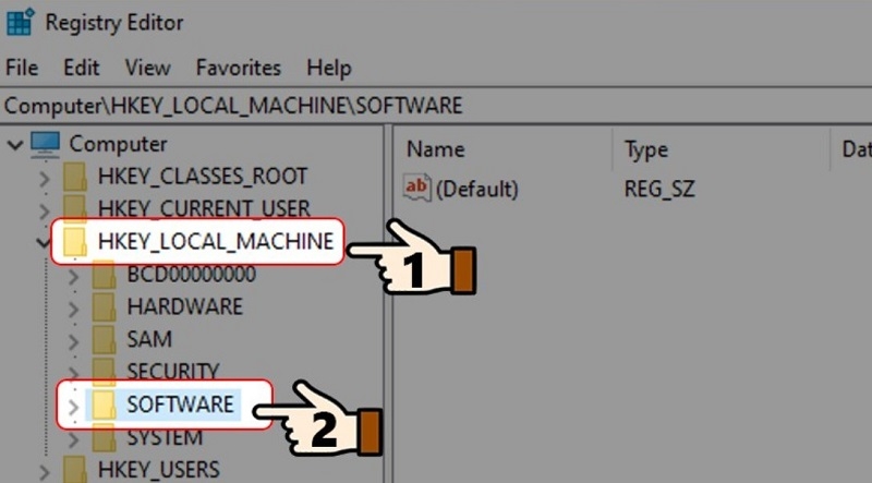 - Điều hướng đến đường dẫn: HKEY_LOCAL_MACHINE\SOFTWARE\Policies\Microsoft\Windows Defender.
