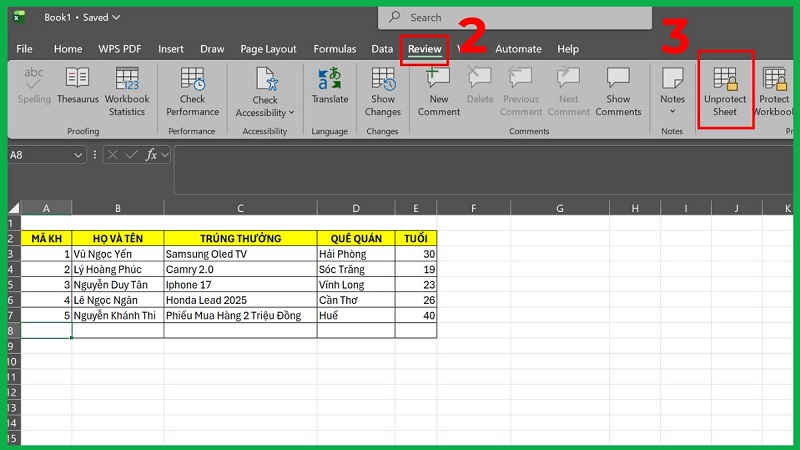 Bước 2: Click Unprotect Sheet