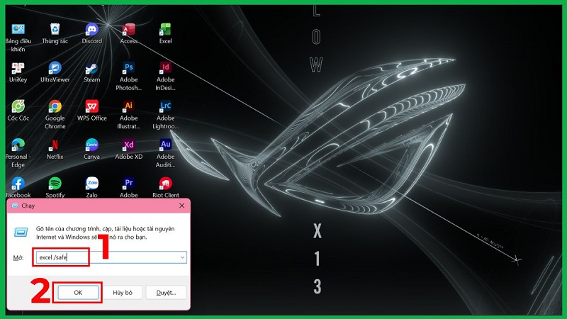 Bước 1: Nhấn Win + R → gõ excel /safe → Enter (mở Safe Mode)