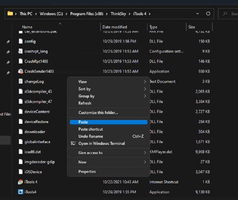 Sao chép toàn bộ tệp trong thư mục kích hoạt (thường đi kèm tệp tải về) vào thư mục C:\ProgramData\ThinkSky\iTools 4\Configs.