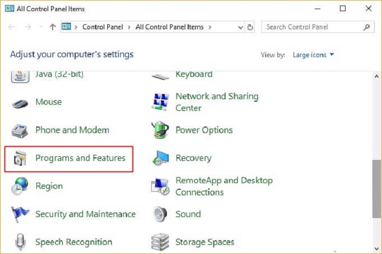 Bước 1: Trước hết, các bạn hãy truy cập vào Control Panel trên máy tính. Sau đó, di chuyển đến mục Programs and Features rồi nhấn chọn để mở.
