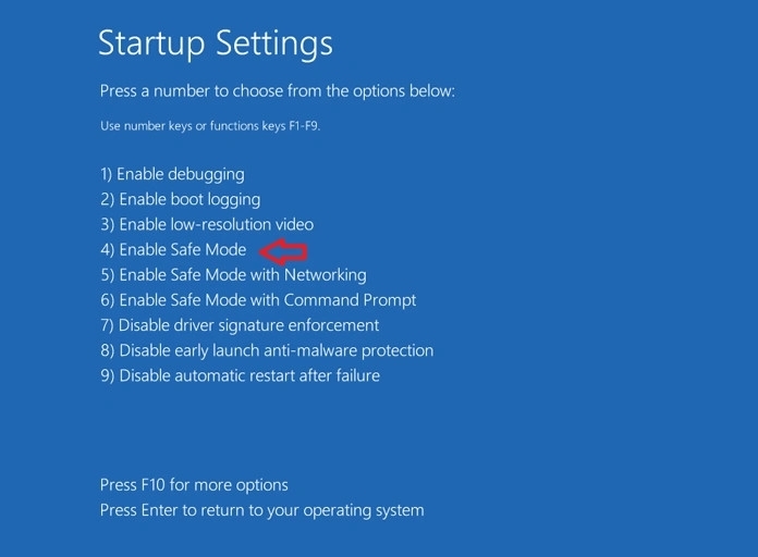 - Nhấn Restart và chọn Safe Mode (số 4)