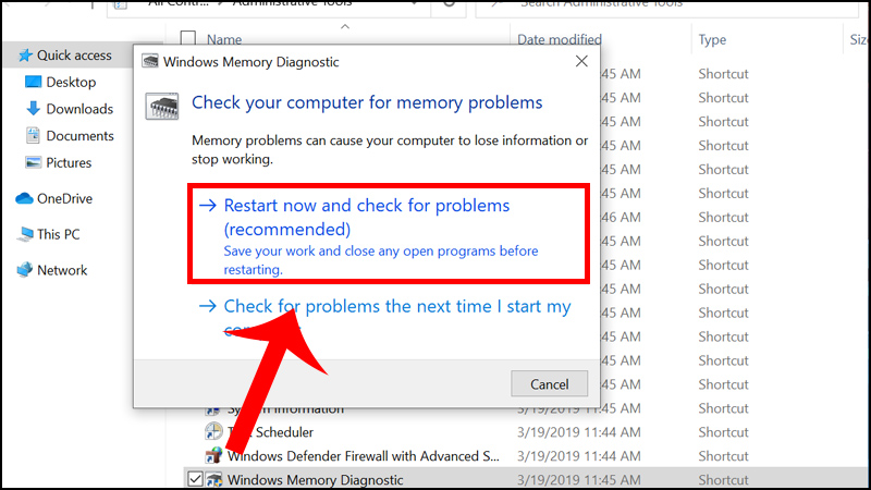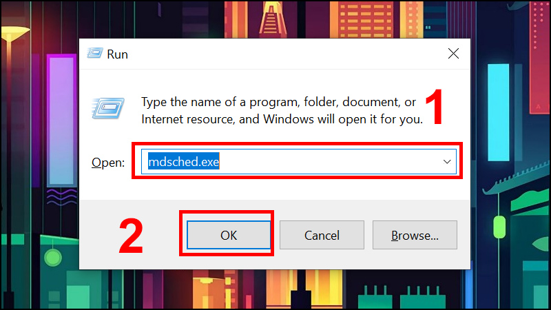 - Nhấn Windows + R, gõ "mdsched.exe"