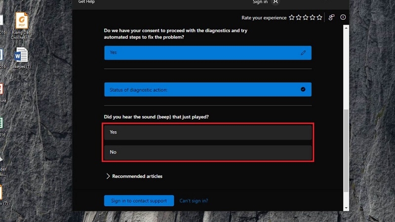 - Chọn "Playing Audio" > Next, và làm theo hướng dẫn. Nhấn chọn Yes >> Bạn bật tiếng để nghe âm thanh >> Nếu nghe thấy tiếng “beep” hãy nhấn vào “Yes”, nếu không hãy nhấn vào “No”. Công cụ này sẽ tự động phát hiện và sửa driver hoặc service bị lỗi.
