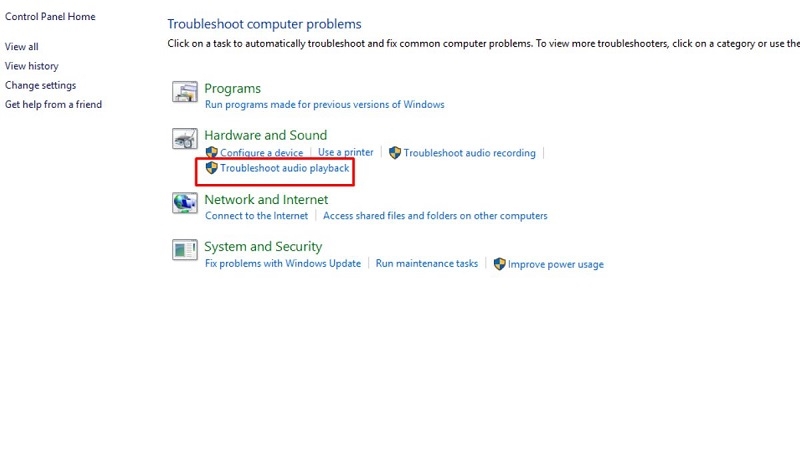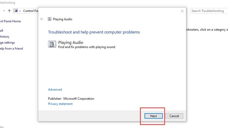 - Mở Control Panel > Troubleshooting > View all > Playing Audio.