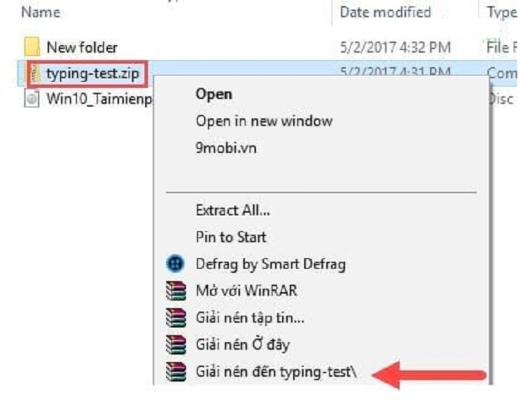 Bước 2: Sau khi đã tải phần mềm Typing Test hoàn tất, bạn tiến hành giải nén. Để làm điều này, bạn có thể sử dụng các phần mềm giải nén phổ biến như winRAR, Zip hoặc 7z.