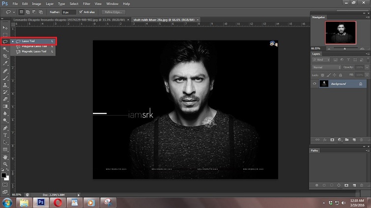 - Chọn công cụ Lasso (phím tắt "L") để vẽ vùng chọn tự do quanh khuôn mặt cần ghép từ bức ảnh khác.