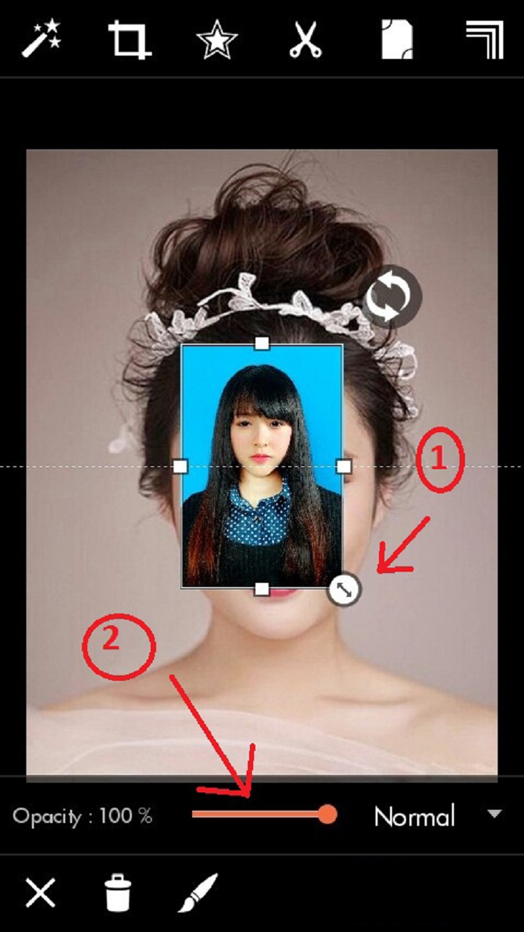 - Sử dụng chức năng chèn khuôn mặt để tích hợp, điều chỉnh vị trí bằng các nút di chuyển và thay đổi kích thước.