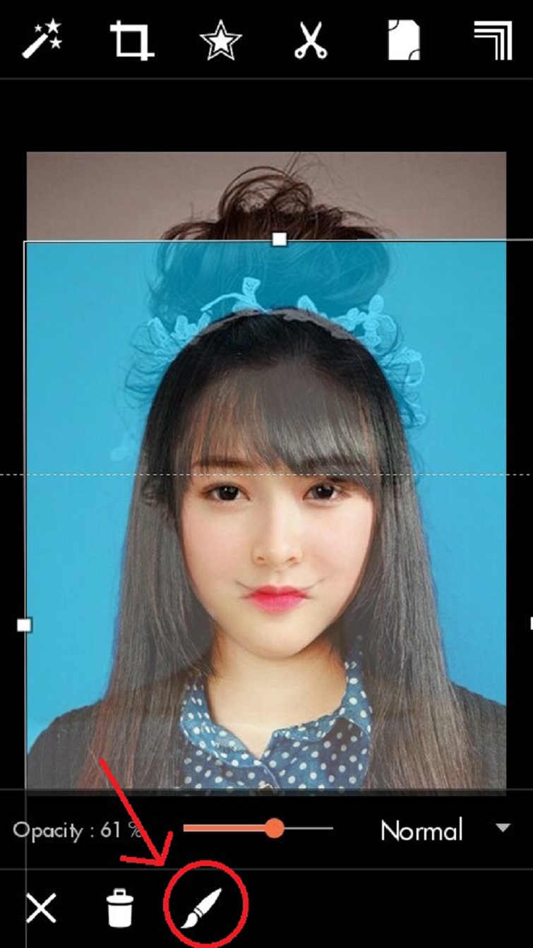 - Sử dụng công cụ bút lông và cục tẩy để xóa phần thừa, sau đó tăng Opacity lên 100%.