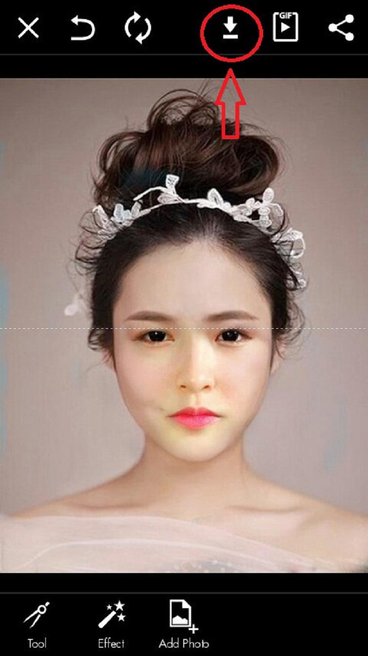 - Lưu ảnh bằng biểu tượng mũi tên xuống.