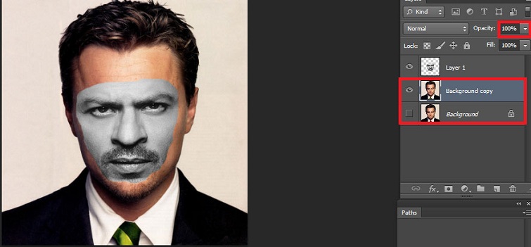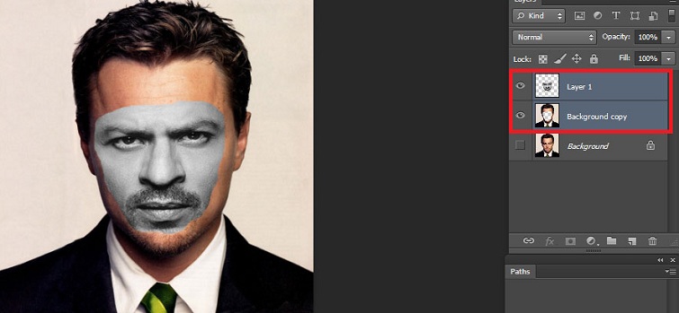 - Sau khi chọn vùng khuôn mặt, sử dụng tổ hợp phím Ctrl+C để sao chép, sau đó chuyển sang ảnh nền và Ctrl+V để dán.