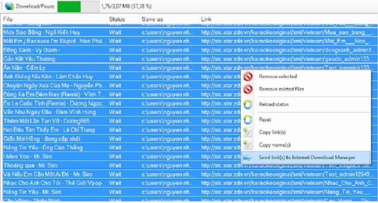 Tiếp theo, bạn nhấn tổ hợp phím Ctrl + A. Sau đó, nhấn vào mục Send link to IDM để tải nhanh hơn.