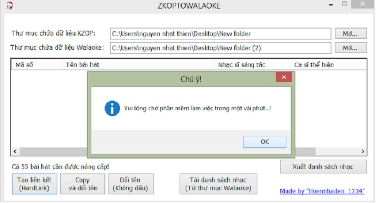 - Có tool Zing To Walaoke ( Các bạn chú ý rằng, chỉ cần chạy ZingToWalaoke.exe).