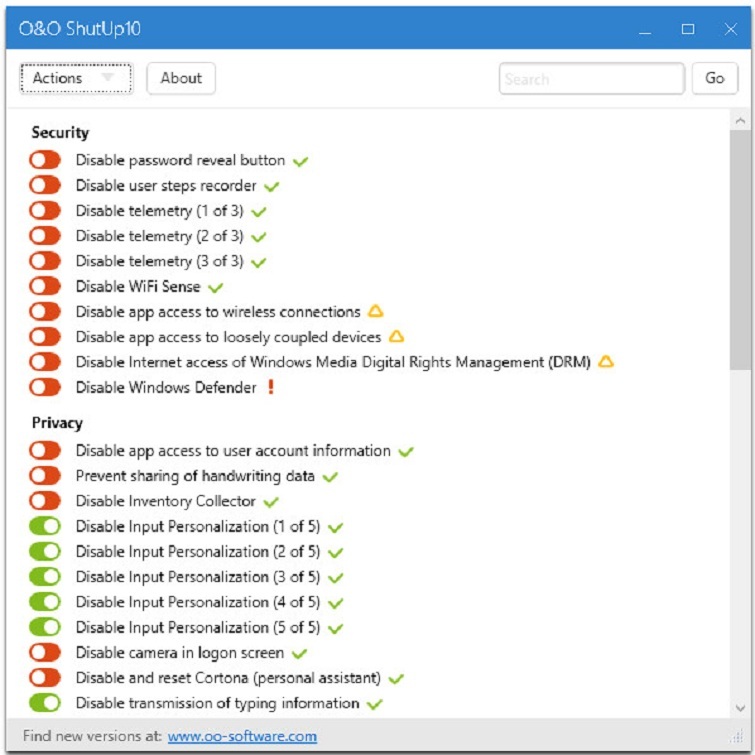 Phần mềm sửa lỗi win 10 miễn phí O&O Shut Up 10
