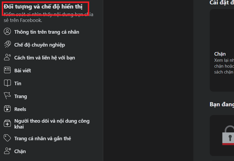 Bước 3: Bên trái chọn Đối tượng và khả năng hiển thị (Audience and Visibility)