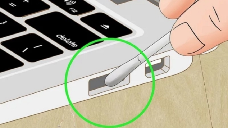 - Lau nhẹ bên trong cổng bằng tăm bông nhúng cồn, tránh dùng lực mạnh.
