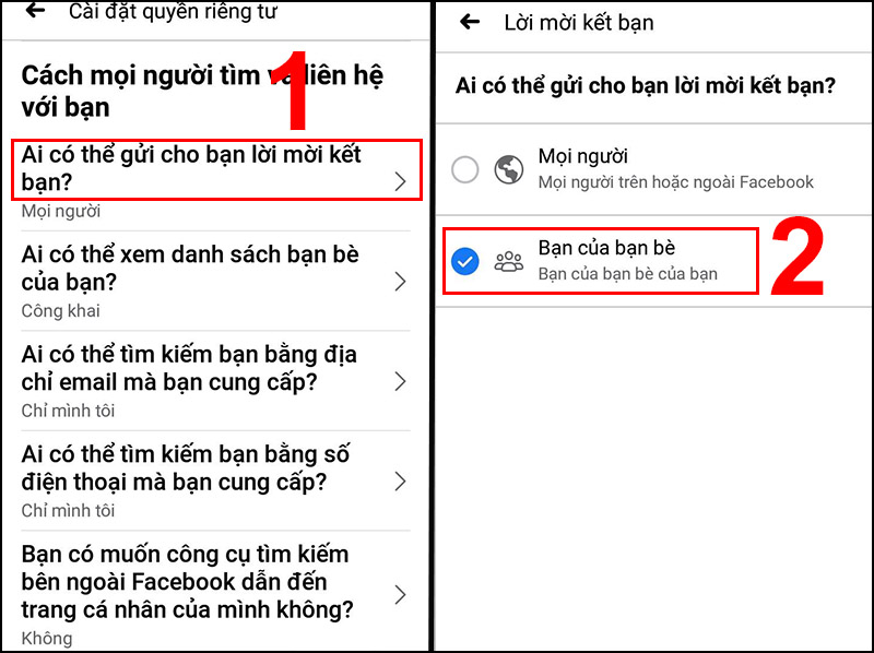 Điều chỉnh "Ai có thể gửi lời mời kết bạn cho bạn?" thành Bạn của bạn bè.