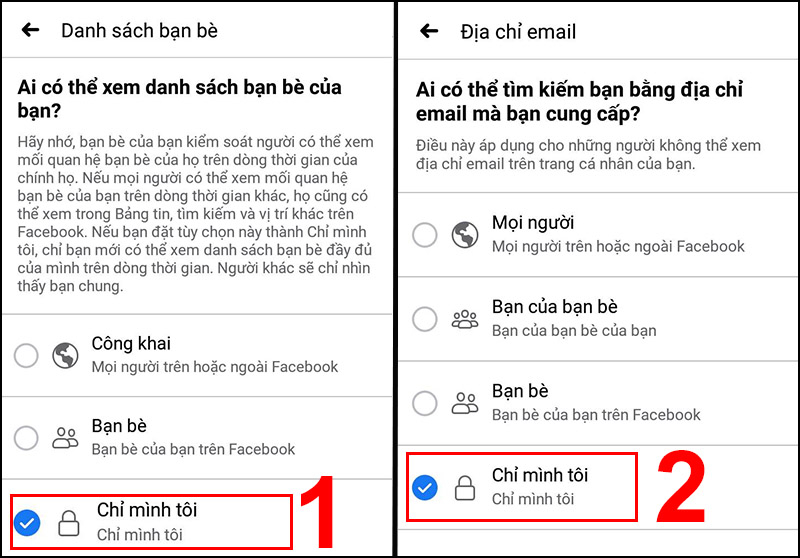 Kiểm tra mục Thông tin cá nhân (email, số điện thoại, ngày sinh) và đặt ở chế độ Chỉ mình tôi.