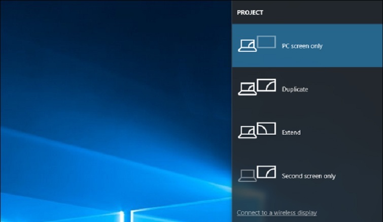 Chọn chế độ hiển thị: Nhấn tổ hợp phím Windows + P để mở menu Project. Các tùy chọn bao gồm:
