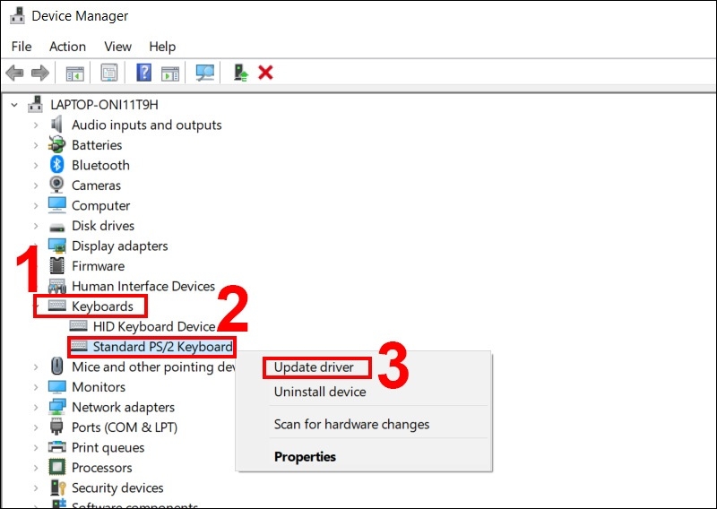 - Mở rộng Keyboards, chuột phải vào driver bàn phím > Update driver > Search automatically.
