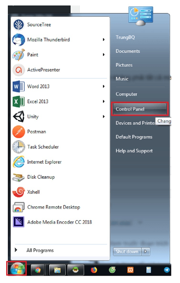 Bước 1: Trước hết, các bạn nhấn vào Windows, rồi chọn vào mục Control Panel.