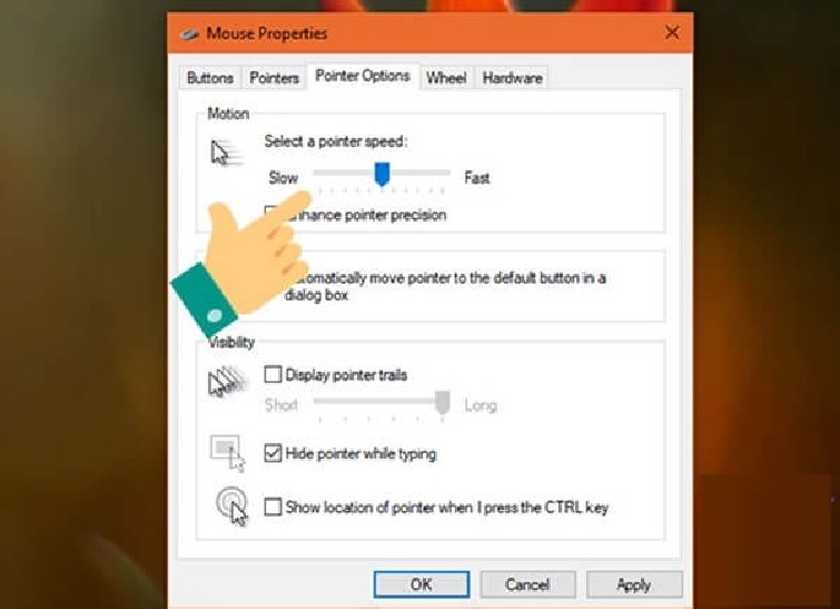 - Pointer Options > Điều chỉnh thanh trượt tương tự.